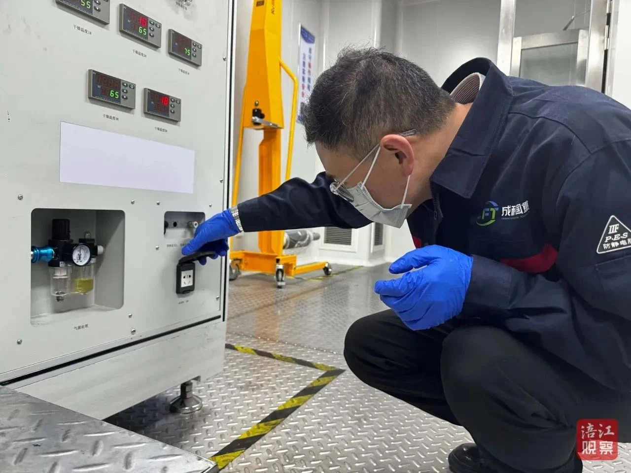 站在中试线旁的程开军,是该公司的技术总工,开工后,他针对中试化平台开启安全检查工作,对设备启动进行验证;同时,收集汇总前期的验证数据,为下一步验证开发工作提供数据支撑。