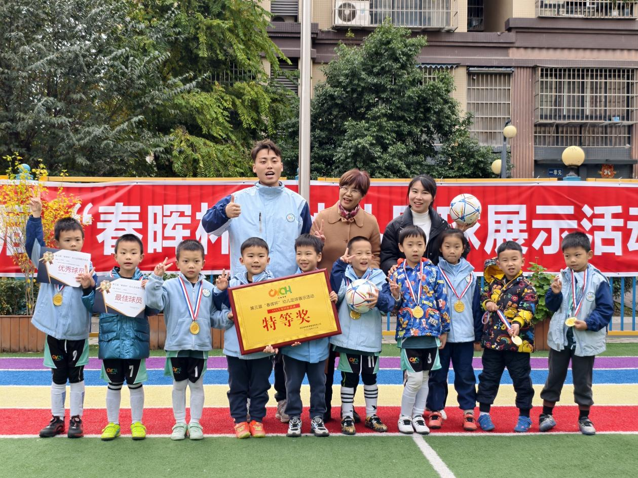 如今,春晖教育的足球特色教育成绩亮眼。旗下一所幼儿园荣获全国足球特色幼儿园称号,五所幼儿园被评为市级足球特色幼儿园。在丰富多彩的足球游戏、赛事训练以及足球文化的熏陶下,孩子们的身体素质得到了显著提升,并在各类幼儿足球友谊赛和展示活动中崭露头角,取得了优异的成绩,在多届“奔跑吧·少年”幼儿体育大会(幼儿足球)中,他们更是累计斩获了三项一等奖和四次二等奖的佳绩。春晖教育将继续深化特色园所建设,为更多幼儿提供优质、多元且富有特色的教育资源,让孩子们在充满趣味与挑战的学习环境中茁壮成长,绽放无限潜能。