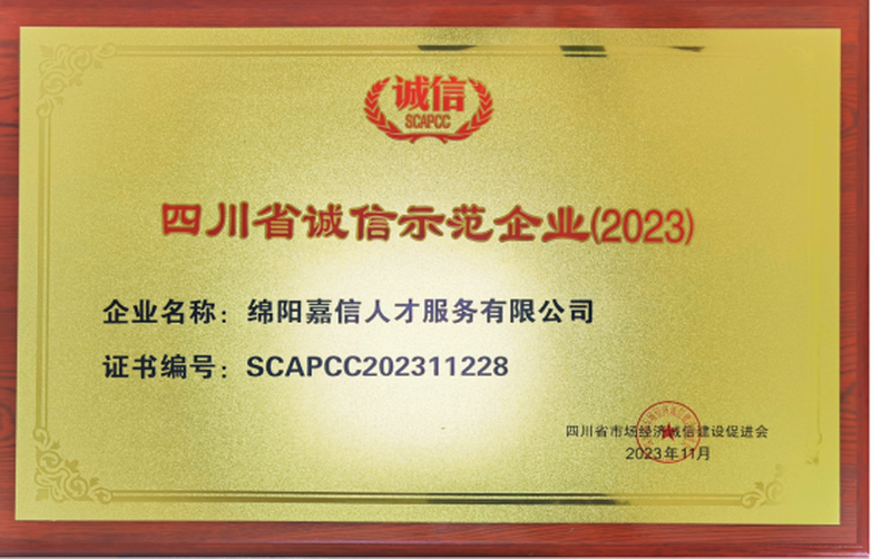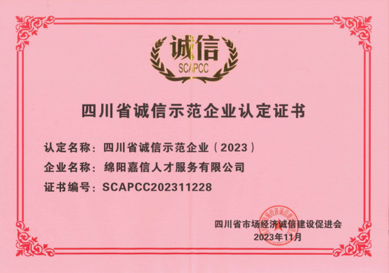 坚守诚信,创造典范 嘉信人服荣膺“四川省诚信示范企业”
