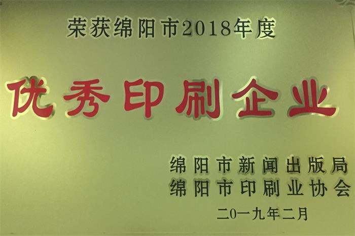 春晖印务公司再获绵阳市“优秀印刷企业”荣誉称号