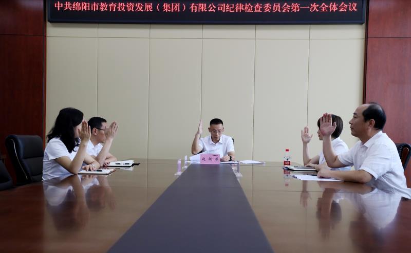 会上,市国资委领管科科长蒋娟同志宣读了市国资委党委《关于同意召开中国共产党绵阳市教育投资发展(集团)有限公司党员大会的批复》,大会采取无记名差额选举的方式,选举产生了集团第一届党的委员会和纪律检查委员会,陈建强、廖昭宏、赵联琴、田仕富、蒲昌文、谢加明6位同志当选为党委委员,赵联琴、孙婧波、刘红光、王伟、汪敏5位同志当选为纪委委员。在随后召开的第一届党的委员会和纪律检查委员会第一次全体会议上,选举陈建强同志为党委书记,选举廖昭宏同志为党委副书记,选举赵联琴同志为纪委书记。
