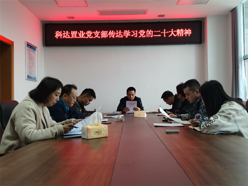 11月9日科达置业召开支部党员大会,支部书记李昌隆带领全体党员深入学习党的二十大精神,各部门负责人、入党积极分子参加学习。
