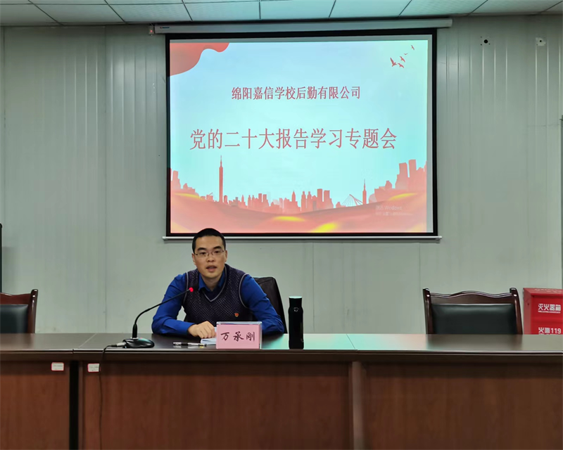 会上,公司党支部书记、执行董事万承刚组织全员集中学习了党的二十大报告、十九届中央纪律检查委员会工作报告决议、十九届中央委员会报告决议、中国共产党章程(修正案)决议和绵阳市委、教投集团党委传达学习二十大精神会议精神。