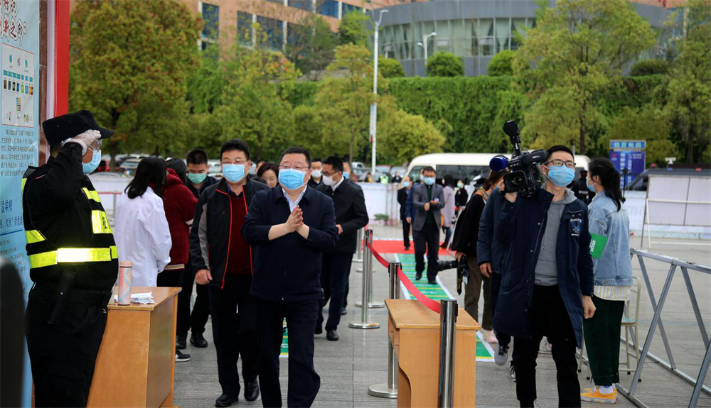 4月2日,正值教投集团下属绵阳中学实验学校毕业班学生返校复学的第一天。下午4点,绵阳市委副书记、市长元方一行到达学校,检查督导疫情防控和开学复课工作。副市长蒋丽英,市政府秘书长吴明禹,市委教育工委副书记、绵阳市教育和体育局党组书记、局长胡东,教投集团董事长陈建强,以及市委目标绩效办、市卫生健康委、市经信局、市市场监管局、市公安局等单位领导陪同调研。