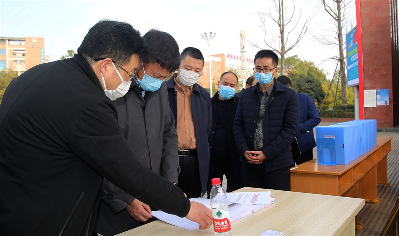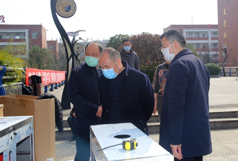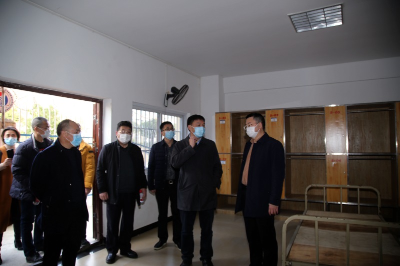 领导一行采用查阅过程资料加现场调研的方式,对学校疫情防控进行了全面深入的了解并做了指导。在详细查阅了学校 “三案九制”及师生健康状况每日摸排过程性资料后,张部长一行还现场查看了学校办公区、教学区、住宿区、食堂、医务室、隔离室等区域,询问了学校师生疫情排查、日常消毒及封闭管理、消毒液及防护器材购置、网络课堂开展及应对延迟开学准备工作等事项。