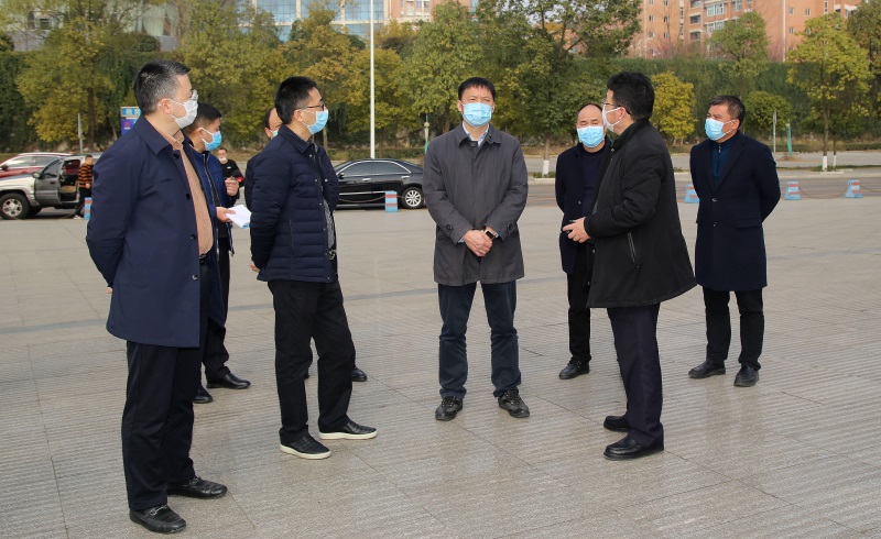 2月24日下午,绵阳市市委常委、市委秘书长、宣传部长张学民带领市委副秘书长田丛荣、绵阳市教育和体育局局长胡东、绵阳市卫健委副主任周万明等一行领导莅临绵阳中学实验学校,视察绵阳中学实验学校应对新型冠状病毒感染的肺炎防控工作。教投集团董事长陈建强、副总经理田仕富、绵阳中学实验学校校长翟勇、副校长廖先虎等领导陪同了视察。