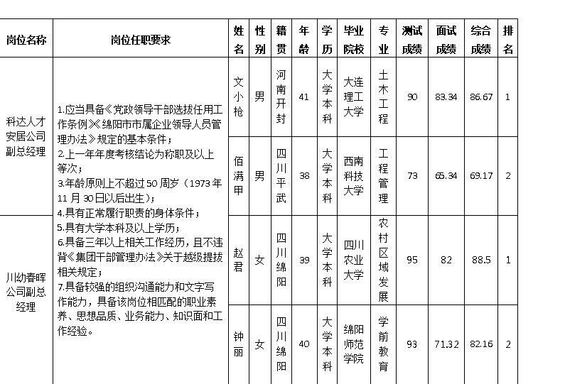 偷拍论坛 关于科达人才安居公司、川幼春晖公司副总经理岗位内部竞聘的成绩公示