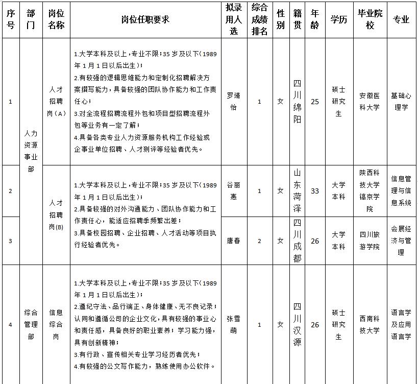 偷拍论坛 关于招聘综合管理等岗位 拟录用人员的公示
