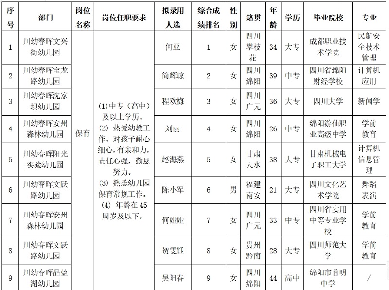 公示期为:2024年4月20日至2024年4月24日。公示期间,如有异议,请以电话、信函等方式向川幼春晖综合部门反映。