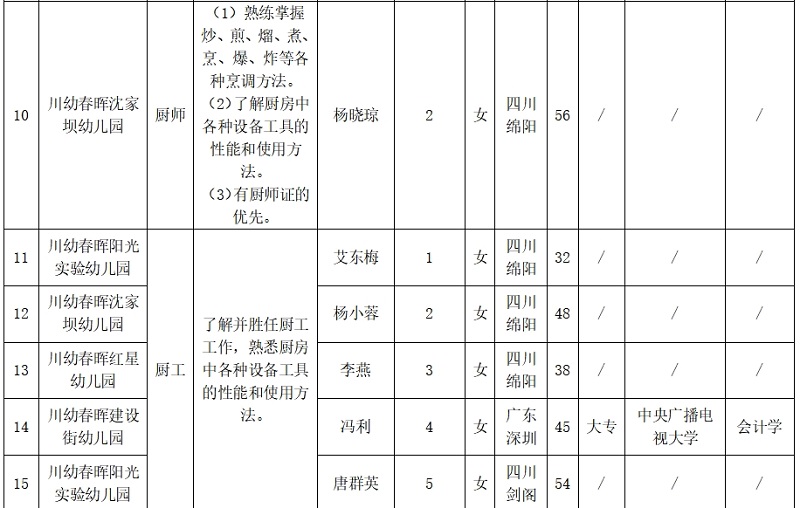 注:厨师岗位王华东(综合成绩排名第1),因个人原因主动放弃。