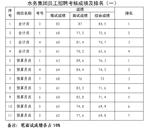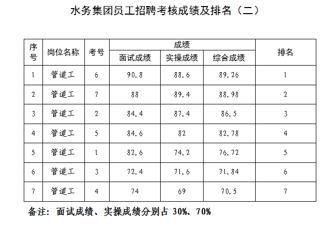 绵阳市水务(集团)有限公司 关于2023年度员工招聘部分岗位测评成绩的公示