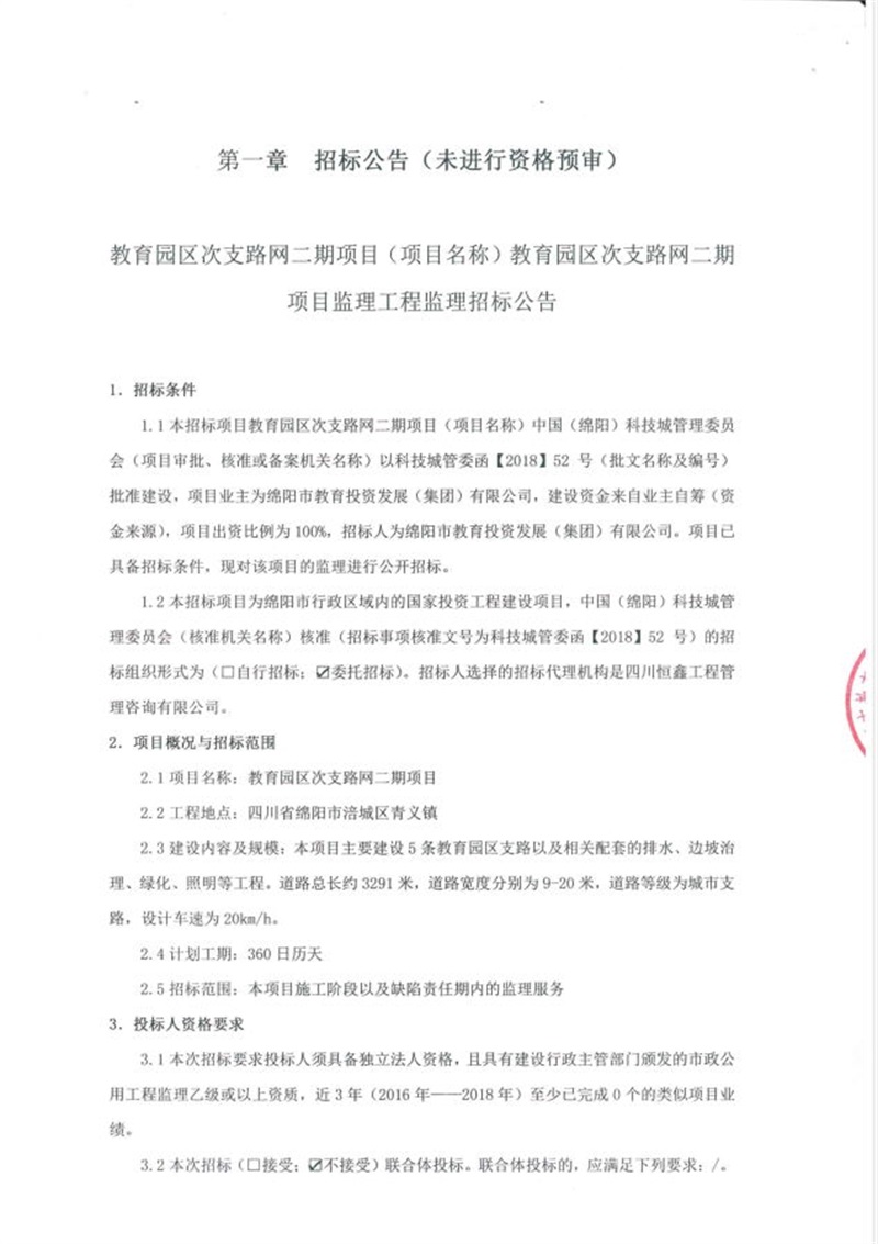 教育园区次支路网二期项目监理工程监理招标公告