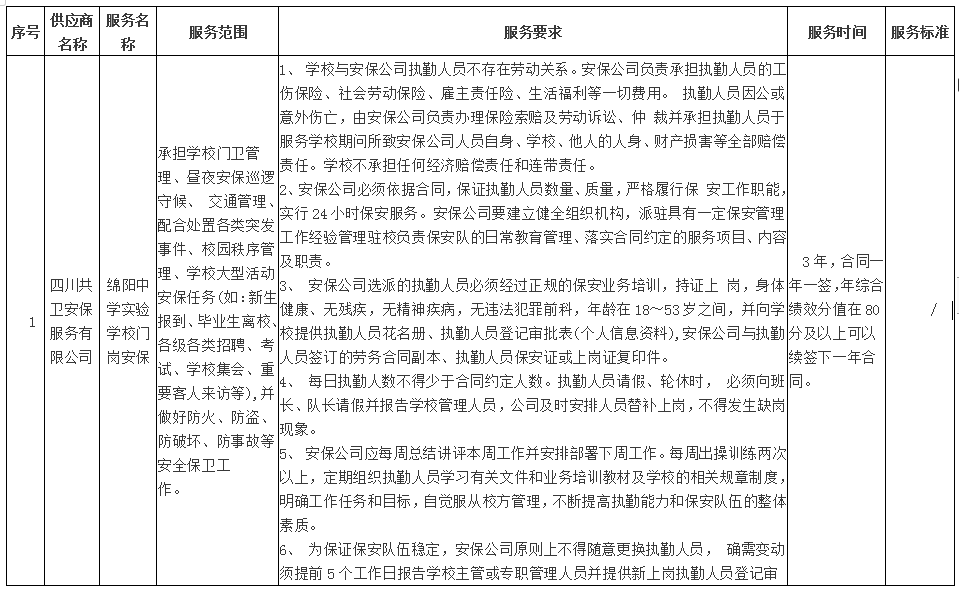 绵阳中学实验学校门岗安保中标公告
