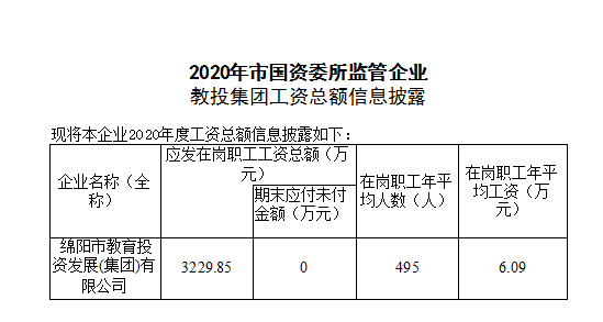 教投集团2020年工资总额信息披露